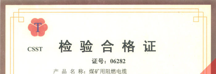國家采煤機(jī)械質(zhì)量監(jiān)督檢驗(yàn)中心檢驗(yàn)合格證--煤礦用阻燃電纜(MHYAV,MHYA32,MHJYV)