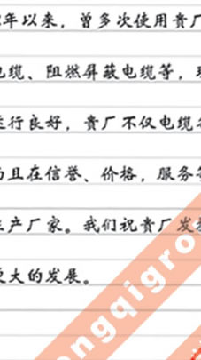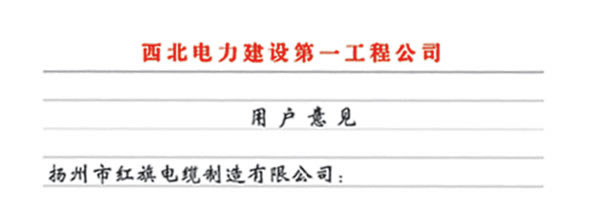 西北電力建設(shè)第一工程公司在多年使用我公司多種電纜產(chǎn)品后對我公司產(chǎn)品質(zhì)量和服務(wù)的評價