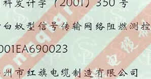 國(guó)家級(jí)星火計(jì)劃項(xiàng)目證書(防白蟻型信號(hào)傳輸網(wǎng)絡(luò)阻燃測(cè)控電纜)