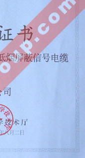 高新技術(shù)產(chǎn)品認(rèn)定證書(礦井監(jiān)控系統(tǒng)用本安型無鹵低煙屏蔽信號電纜)