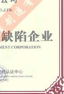 中國質(zhì)量無投拆產(chǎn)品無缺陷企業(yè)證書