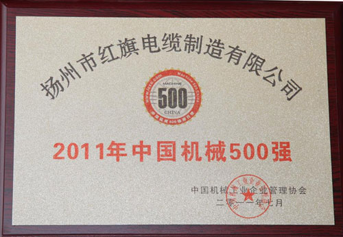 揚(yáng)州市紅旗電纜制造有限公司榮耀躋身國家機(jī)械行業(yè)500強(qiáng)