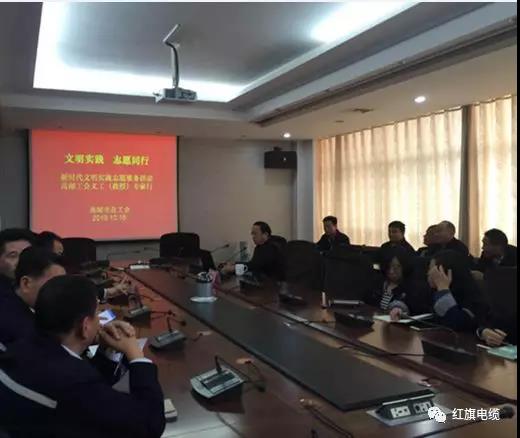 10月16日下午,揚州市紅旗電纜制造有限公司工會結合新時代文明實踐活動和“不忘初心、牢記使命”主題教育活動,特舉辦“義工教授專家行”活動,邀請了高郵市黨校副校長、工會“義工教授”曹豐漢來公司進行 “文明實踐 志愿同行-新時代文明實踐服務活動”專題講座。